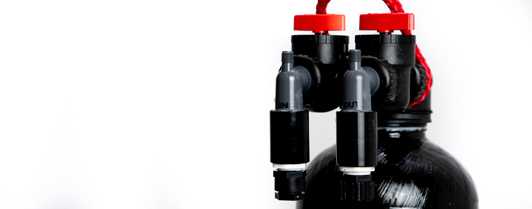 Step 1: Lube up all four O-rings on the red bypass valve assembly and 90° gray elbows.